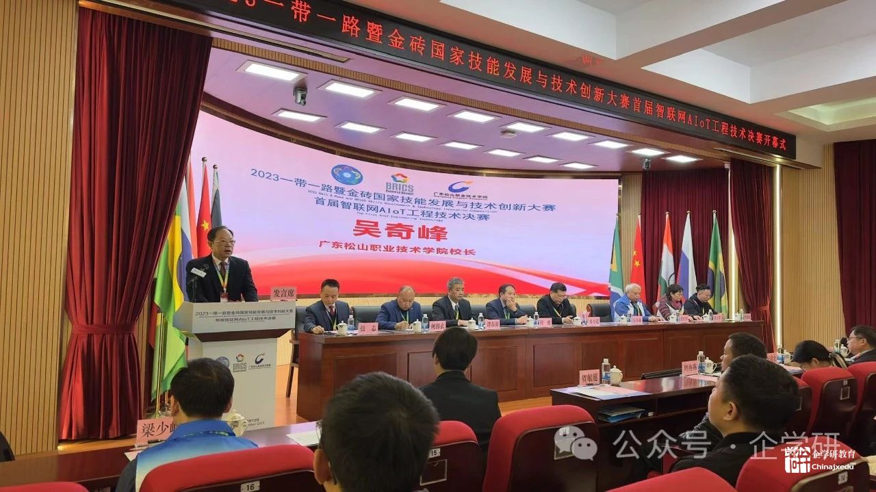 2023年12月22日-25日,由金磚國家工商理事會(BRICS BC)、一帶一路暨金磚國家技能發展國際聯盟(IASDB)、教育部中外人文交流中心等單位聯合主辦的2023一帶一路暨金磚國家技能發展與技術創新大賽之首屆智聯網AIoT工程技術決賽在廣東松山職業技術學院成功舉辦。
