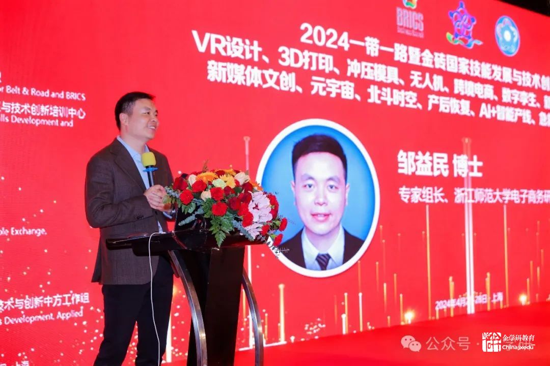 金磚國家技能發展與技術創新大賽組委會執委會副主席,北京企學研教育科技研究院執行院長何勇做《2017-2024金磚國家技能發展與技術創新成果設計與務實合作》主題報告