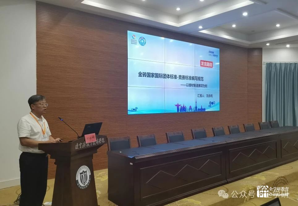金磚國家技能發展與技術創新大賽組委會執委會副主席何勇介紹金磚國家國際團體標準制定工作體系