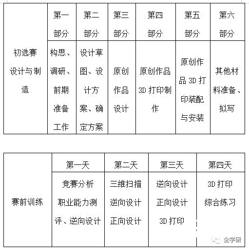 本次競賽以“新時代、新技能、新夢想”為主題,分為初選賽、選拔賽、決賽。2021年8月,全國云端作品初選賽如約而至,全國百名職工、教師、學生參加作品選拔初選賽,初選賽通過線下制作原創作品、線上答辯的形式進行,要求按照競賽主題“新時代、新技能、新夢想”,尋找生產生活中的實際技術問題并解決,要求具有創新功能與運動功能,80%以上零件應為3D打印件,鼓勵采用一體化設計。提交的文件主要有:作品創意說明;作品設計模型;作品視頻;聲明及授權。