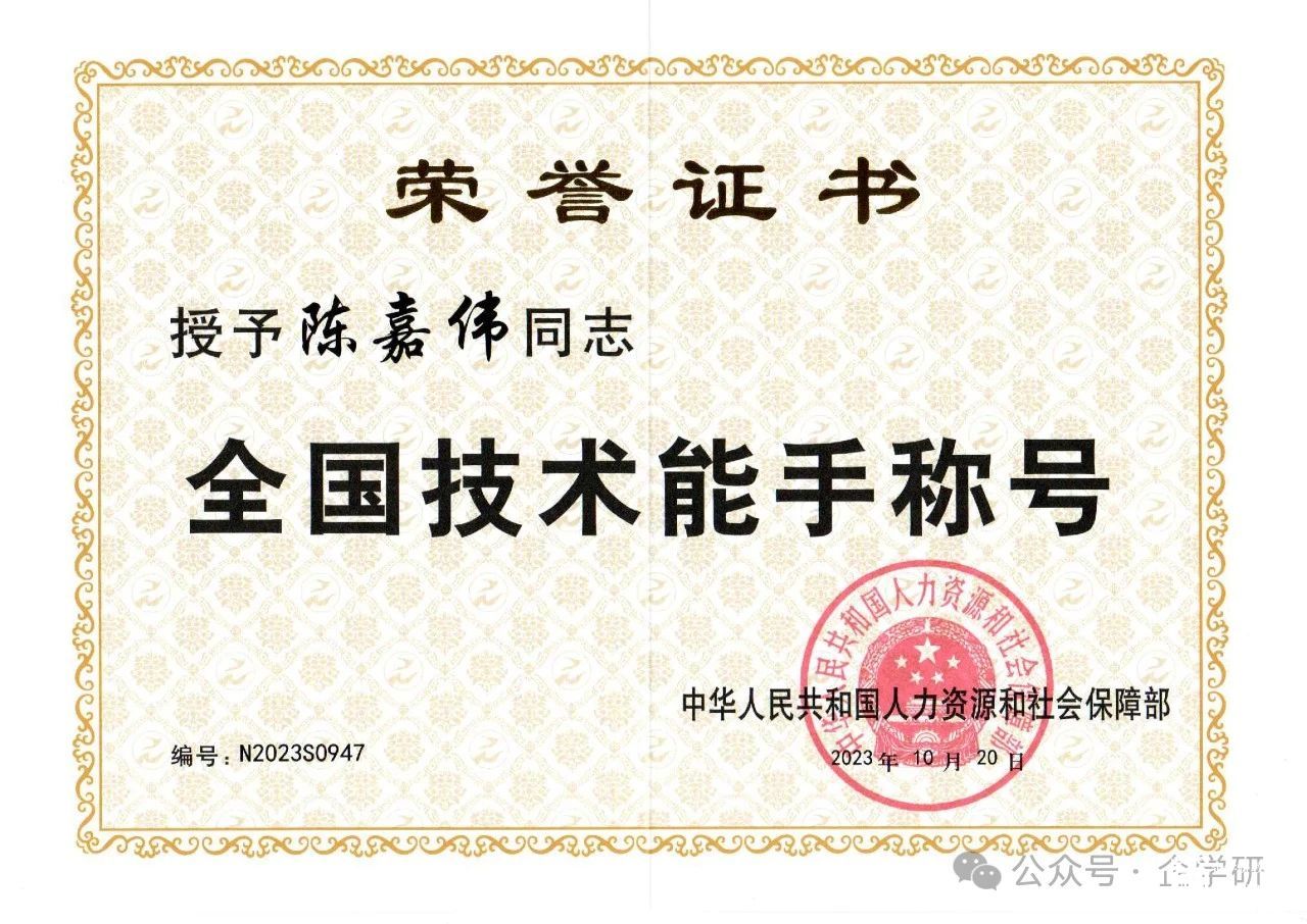 2022年11月,在長興技師學院舉辦了一場技能競賽,而我在這里收獲了最讓我這輩子激動的獎項:職工組特等獎獲得者為廣東代表隊陳嘉偉,并且可以申報全國技術能手榮譽稱號。