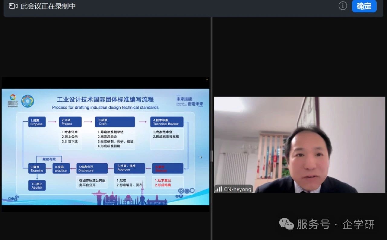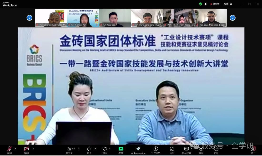 最后,北京企學(xué)研教育科技研究院副院長李昂向中外專家介紹了金磚國家團(tuán)體標(biāo)準(zhǔn)“工業(yè)設(shè)計(jì)技術(shù)賽項(xiàng)”課程、技能和競賽三份標(biāo)準(zhǔn)制定工作的后續(xù)安排。