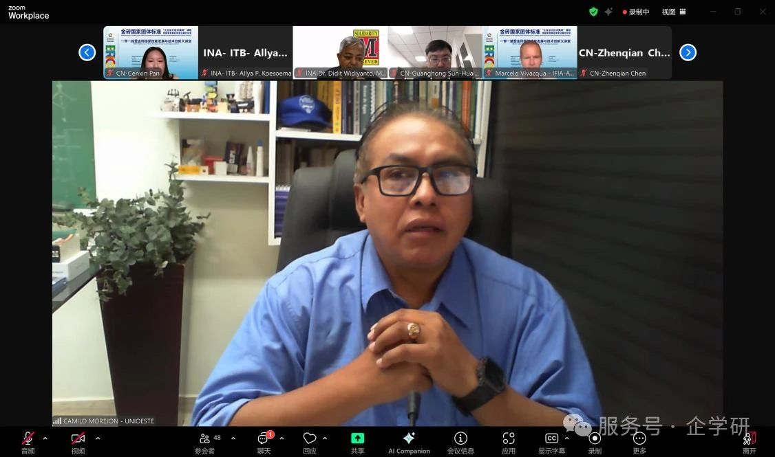 討論環(huán)節(jié)中,Internationalization Coordinator of SENAI Institutes of Innovation and Technology 的博士、金磚技能與技術(shù)標(biāo)準(zhǔn)化工作委員會(huì)委員Valerio Junior Piana ,ABIPIR的主席 Marcelo Vivacqua,F(xiàn)ederal University of Santa Catarina的教授Harrysson Luiz da Silva,University of Western Paraná的教授Camilo Freddy Morejong,工業(yè)技術(shù)顧問、工程師Ricardo Oliveira,Tecnical Association of Industrial Design in Russia的創(chuàng)始人、工業(yè)設(shè)計(jì)領(lǐng)域?qū)<褹ndrei Ermakov,Thekwini Municipal Academy首席執(zhí)行官Dr. Mpilo Ngubane;南非西北大學(xué)計(jì)算機(jī)科學(xué)與信息系統(tǒng)學(xué)院副教授、金磚技能與技術(shù)標(biāo)準(zhǔn)化工作委員會(huì)委員Jacob Jacobus Greeff;印度尼西亞商業(yè)與經(jīng)濟(jì)民主基金會(huì)IBEKA董事會(huì)、印度尼西亞研究與創(chuàng)新機(jī)構(gòu)負(fù)責(zé)人Tri Mumpuni lskandar及團(tuán)隊(duì)專家;巴基斯坦的Mohsin Ali(中國-金磚國家新時(shí)代科創(chuàng)孵化園,綜合服務(wù)中心知識(shí)產(chǎn)權(quán)專家)等十余名國際專家參與討論。參與討論的專家們,對中方開發(fā)的3份標(biāo)準(zhǔn)表示了肯定,期待能通過標(biāo)準(zhǔn)制修訂活動(dòng)與中方的職業(yè)院校以及專家開展深入的交流合作。