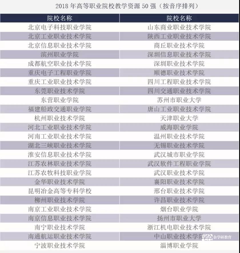 6月20日,《2019中國高等職業教育質量年度報告》發布會在北京隆重召開。2019年度報告進一步完善了學生成長成才、學校辦學實力、發展環境、國際影響力和服務貢獻力構成的“五維質量觀”,并首次發布高等職業院校育人成效50強榜單,增加了學生反饋表,重視學生在校期間的獲得感,引導高職院校注重全面落實立德樹人的根本任務;優化了教學資源50強指標,體現職業教育類型特征,從硬件資源、教師資源、課程資源、校企合作資源等四個維度、11個指標項目對院校的辦學資源進行評價;國際影響力50強評價指標更加強調專業課程標準水平、國(境)外服務與影響。報告首次發布了各地區政策落實評價結果,31個省(市、區)公辦高職院校年生均財政撥款水平達到12000元。