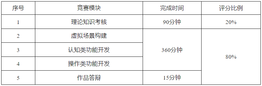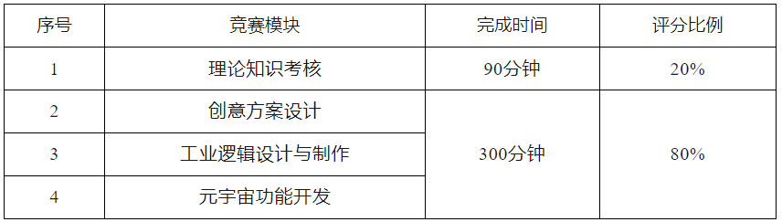 競賽內容要求(1)工業產品模型設計與制作。根據給定模型透視圖或三視圖等素材,選擇合適建模軟件,完成三維模型的設計與制作。(2)數字孿生功能開發。結合給定的主題背景及具體任務描述,利用虛擬現實開發引擎和技術,融入自己的創新設計思路,開發一款數字孿生交互平臺,包含場景創設、燈光渲染、界面設計、動畫制作、邏輯判斷、數據處理、虛實交互等。(3)視頻剪輯。準確體現任務2中要求的具體任務;制作片頭片尾、視頻剪輯合理;轉場效果自然;視頻字幕準確,合理。