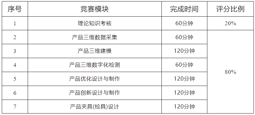 競賽任務包括產品三維數據采集、三維建模、三維數字化檢測、產品優化設計與制作、產品創新設計與制作、產品夾具(檢具)設計。全面考核選手利用三維掃描設備進行數據采集的能力;選手的三維建模能力,特別是曲面建模的能力;選手對產品的尺寸測量和幾何形位公差檢測,以及出具檢測報告的能力;一體化設計和拓撲優化設計的能力;利用金屬打印機以最佳路徑和方法按時高質量完成指定產品加工任務和對打印模型后期處理等方面的能力;對新產品的創新設計、利用光固化打印機以最佳路徑和方法按時高質量完成指定產品加工任務和對打印模型后期處理等方面的能力;夾具或檢具的設計能力及FDM打印機操作、打印件后處理和產品的裝配能力。