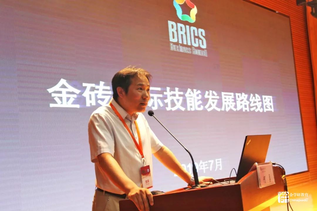 金磚國家技能發(fā)展與技術(shù)創(chuàng)新大賽組委會執(zhí)委會副主席、北京企學(xué)研教育科技研究院執(zhí)行院長何勇致辭。