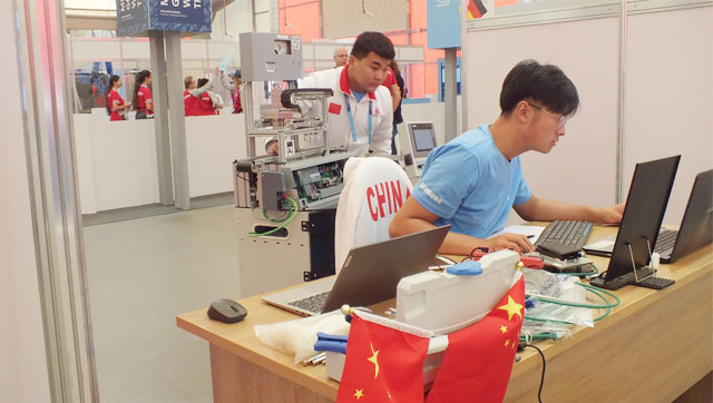 中國廣州市工貿技師學院選手楊書明,專家陳立準、翻譯李潔和南京信息職業技術學院選手成凱、專家李維勇、翻譯梅曉蘭,兩支代表隊出戰這一賽項。他們將同俄羅斯、伊朗、哈沙克斯坦代表隊同臺競技。