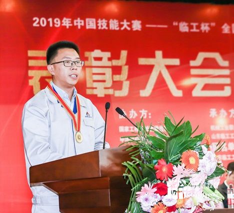 山東臨工工程機械有限公司祝令新摘得桂冠,將報請全國總工會推薦參加“全國五一勞動獎章”的評選。祝令新代表全體選手宣讀《倡議書》。
