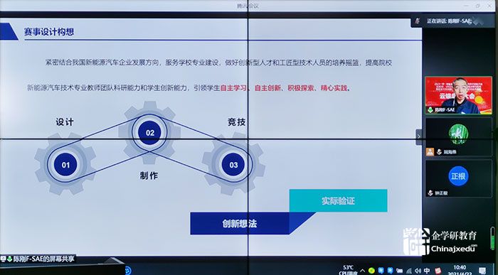 新能源汽車(chē)創(chuàng)新制作賽項(xiàng)專(zhuān)家組長(zhǎng)、中國(guó)汽車(chē)工程會(huì)理事陳剛老師解讀新能源汽車(chē)賽項(xiàng)技術(shù)規(guī)程。陳老師從賽事設(shè)計(jì)構(gòu)想和新能源汽車(chē)創(chuàng)新制作技能大賽規(guī)程解讀兩方面來(lái)說(shuō)。
