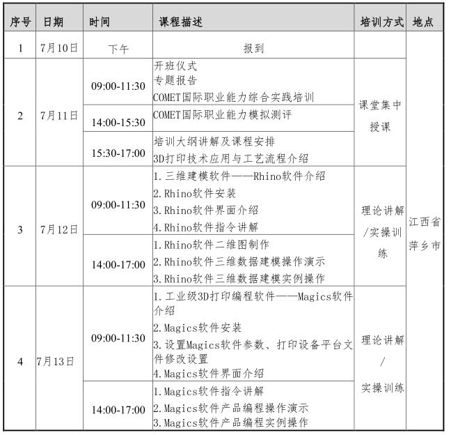 針對競賽考核任務,訓練營課程包括理論知識和前端技術講解、工業級光固化3D打印機操作、實際操作訓練、COMET 國際職業能力八項能力訓練等。