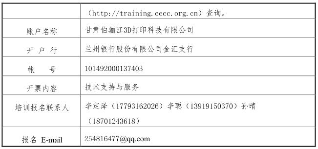 2.請參加培訓的單位于各期次開班前10天將參訓報名表(詳見附件)發送到指定報名聯系人郵箱,并將培訓費用匯入賽項指定帳號。通過郵件方式報名時,請注明金磚大賽3D打印造型技術(工業級光固化3D打印賽道)訓練營報名,匯款注明金磚大賽3D打印造型技術(工業級光固化3D打印賽道)訓練營費用。