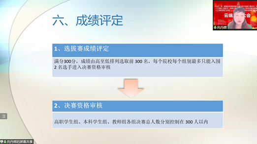 國際貿(mào)易數(shù)字化能力賽項專家組長、廣東省外語藝術職業(yè)學院向丹輝解讀國際貿(mào)易數(shù)字化能力賽項技術規(guī)程。