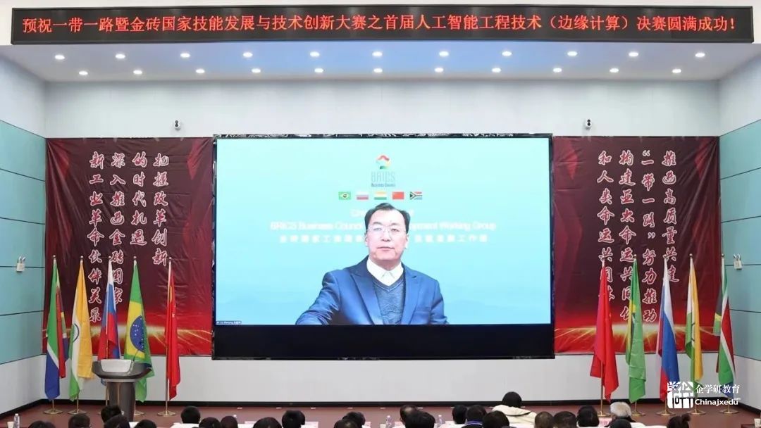 大賽組委會執(zhí)委會主席劉振英進(jìn)行了視頻致辭,他表示,自2017年首屆金磚大賽起,6年來累計(jì)16萬余人次參與了競賽及相關(guān)會議展覽展示、技術(shù)交流等活動。首屆人工智能工程技術(shù)邊緣計(jì)算賽項(xiàng),圍繞真實(shí)場景下的工作過程,工作任務(wù)和工作要求來設(shè)計(jì)競賽內(nèi)容,旨在全面檢查技能人才人工智能工程技術(shù)能力,規(guī)范操作和創(chuàng)新創(chuàng)意水平,加快培養(yǎng)更多適應(yīng)新技術(shù)、新業(yè)態(tài)、新模式的高素質(zhì)技術(shù)技能人才,能工巧匠、大國工匠,助力于職業(yè)教育現(xiàn)場工程師的培養(yǎng)。