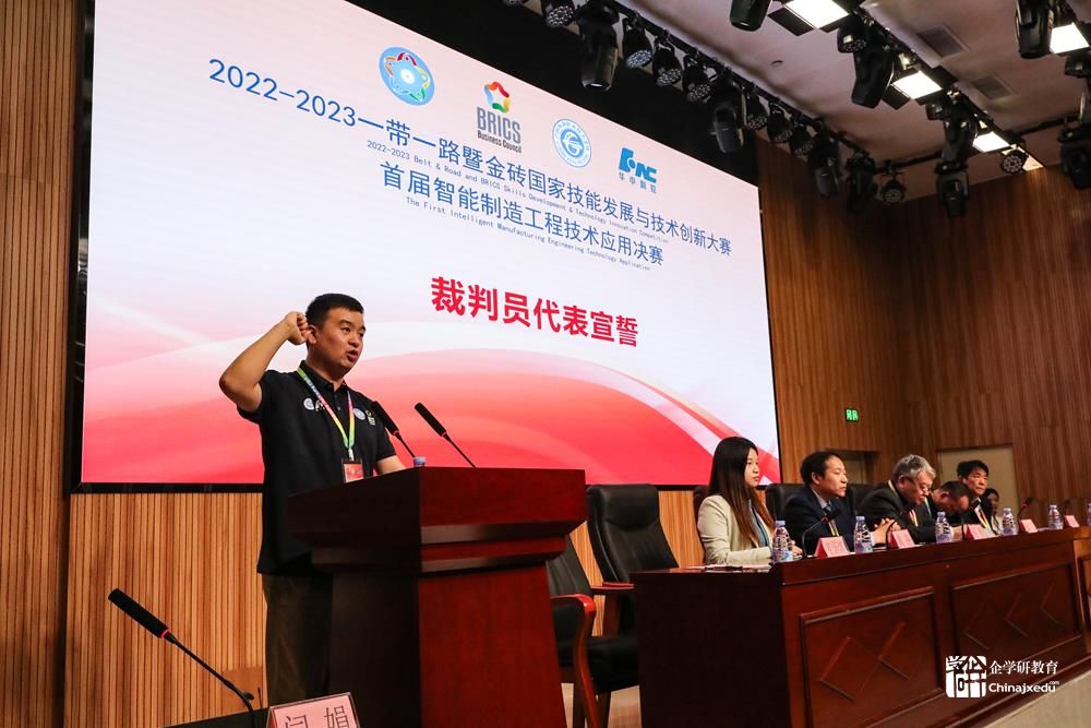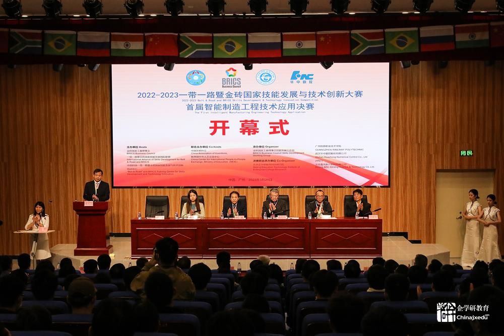 2022-2023一帶一路暨金磚國家技能發展與技術創新大賽之首屆智能制造工程技術應用決賽由金磚國家工商理事會中方理事會、一帶一路暨金磚國家技能發展國際聯盟、中國科協一帶一路暨金磚國家技能發展與技術創新培訓中心主辦,中國發明協會、教育部中外人文交流中心聯合主辦,金磚國家工商理事會(中方)技能發展工作組承辦,北京企學研教育科技研究院、廣州鐵路職業技術學院、武漢華中數控股份有限公司、北京嘉克新興科技有限公司聯合承辦。