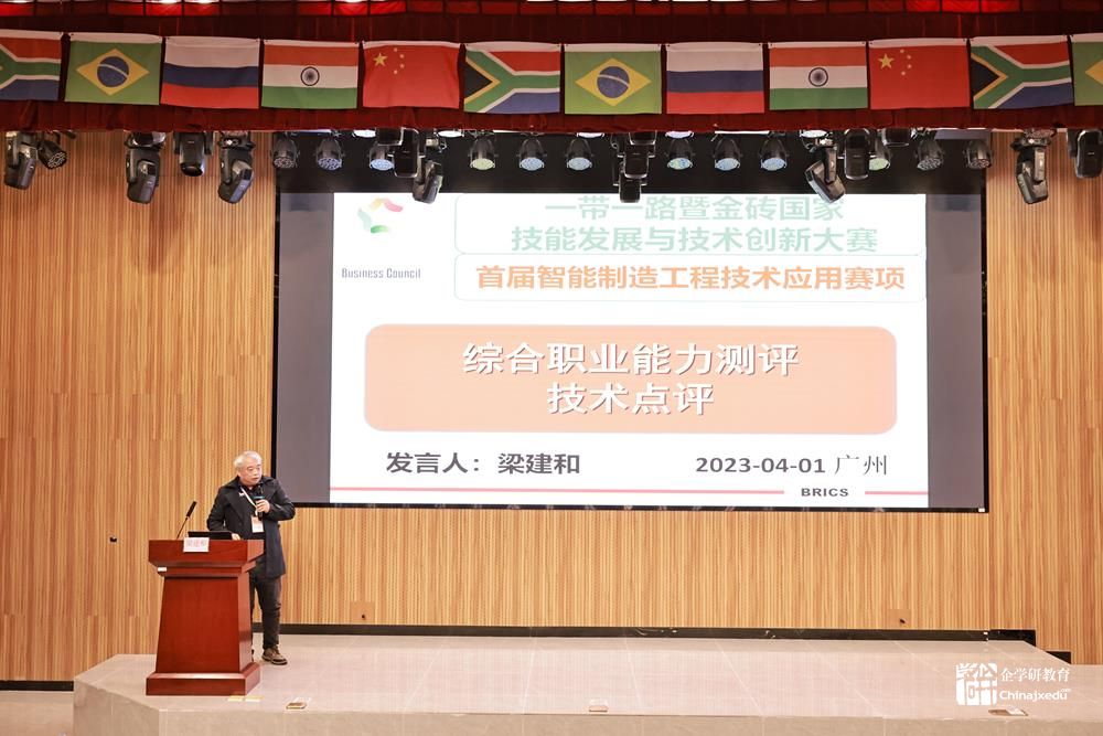 賽項測評組長梁建和教授首先做了職業能力測評部分技術點評。梁建和教授介紹了大賽引入國際綜合職業能力元素的意義和指導思想,講解了COMET能力模型、大賽理論題目采用COMET技術的特點,并對測試題目和各組別測評結果進行了詳細的分析和點評。梁建和教授指出,測試選手的綜合職業能力,掌握選手職業能力指標,完善育人模式適應社會經濟發展對人才的需求。