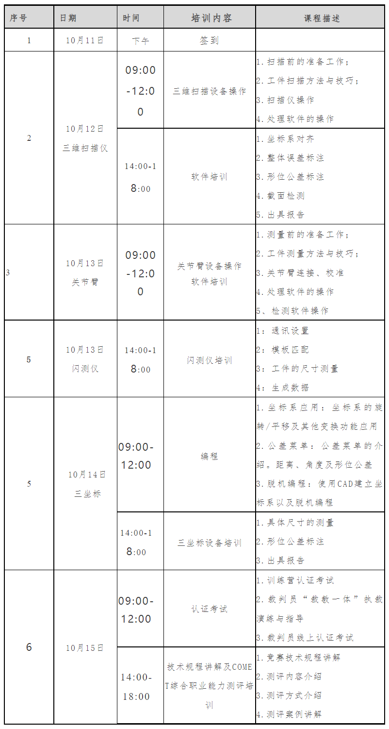 針對競賽考核任務(wù),訓(xùn)練營課程包括理論知識(shí)和前端技術(shù)講解、三坐標(biāo)測量機(jī)、關(guān)節(jié)臂測量儀、三維掃描儀、視覺閃測儀的應(yīng)用與維護(hù)、實(shí)際操作訓(xùn)練、相關(guān)軟件操作、“裁教一體”執(zhí)裁演練與指導(dǎo)等。