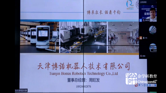 接著工作人員現場連線工業機器人天津博諾實訓基地主任、天津博諾智創機器人技術有限公司總經理周旺發,為大家介紹工業機器人天津博諾實訓基地并對工業機器人裝調維修工和工業機器人操作調整工這兩個職業的職業能力考試站配置標準及學材資源服務的要求以及組織職教博諾考試站批復、培訓、大賽等內容進行指導、分享。